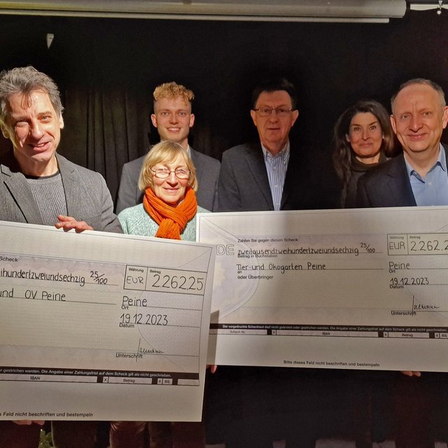 Peine, 19. Dezember 2023. Rasant zog das Jubiläumsjahr „800 Jahre Peine“ an uns vorbei. Das lag sicherlich auch an den vielen Highlights, die das Jahr über stattfanden. Highlight des Jahres war der Jubiläumstag am 10. Juni – die Härke Brauerei schenkte der Stadt ein Jubiläumsbier, die Firmen Pelikan und Rausch schenkten zum Jubiläum Schreibgeräte und Jubiläumspralinen. Der Erlös des Verkaufs von Schreibgeräten und Pralinen sollte für einen wohltätigen Zweck eingesetzt werden. Nun fand die Übergabe statt: Über stolze 4.524,50 Euro können sich jeweils hälftig der Kinderschutzbund Peine und der Tier- und Ökogarten Peine freuen.