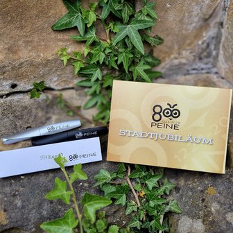 Aus dem Hause Pelikan stammten Füllhalter und Tintenroller im besonderen „800 Jahre Peine-Design“. „Wir freuen uns sehr über den Erfolg der Jubiläumsprodukte. Besonders glücklich sind wir über die hohe Spendensumme, die auch durch unsere Beteiligung erreicht werden konnte“, ist Christian Ehlers, Leiter Qualitätsmanagement bei Pelikan, begeistert. Jeweils 600 Schreibgeräte waren innerhalb kürzester Zeit verkauft.