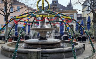Presse Osterbrunnen wird festlich geschmückt